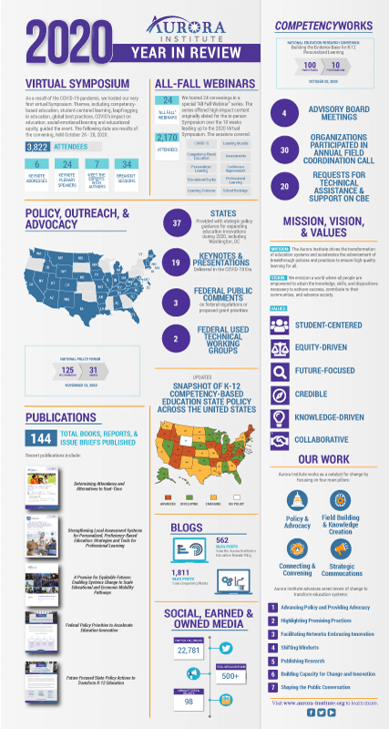 Despite, and in some cases because of, the upheavals we experienced, our work, our support of partners, and our technical assistance with policymakers and practitioners in 2020 accelerated these ideas and pushed education communities to reimagine what is possible for K-12 education.